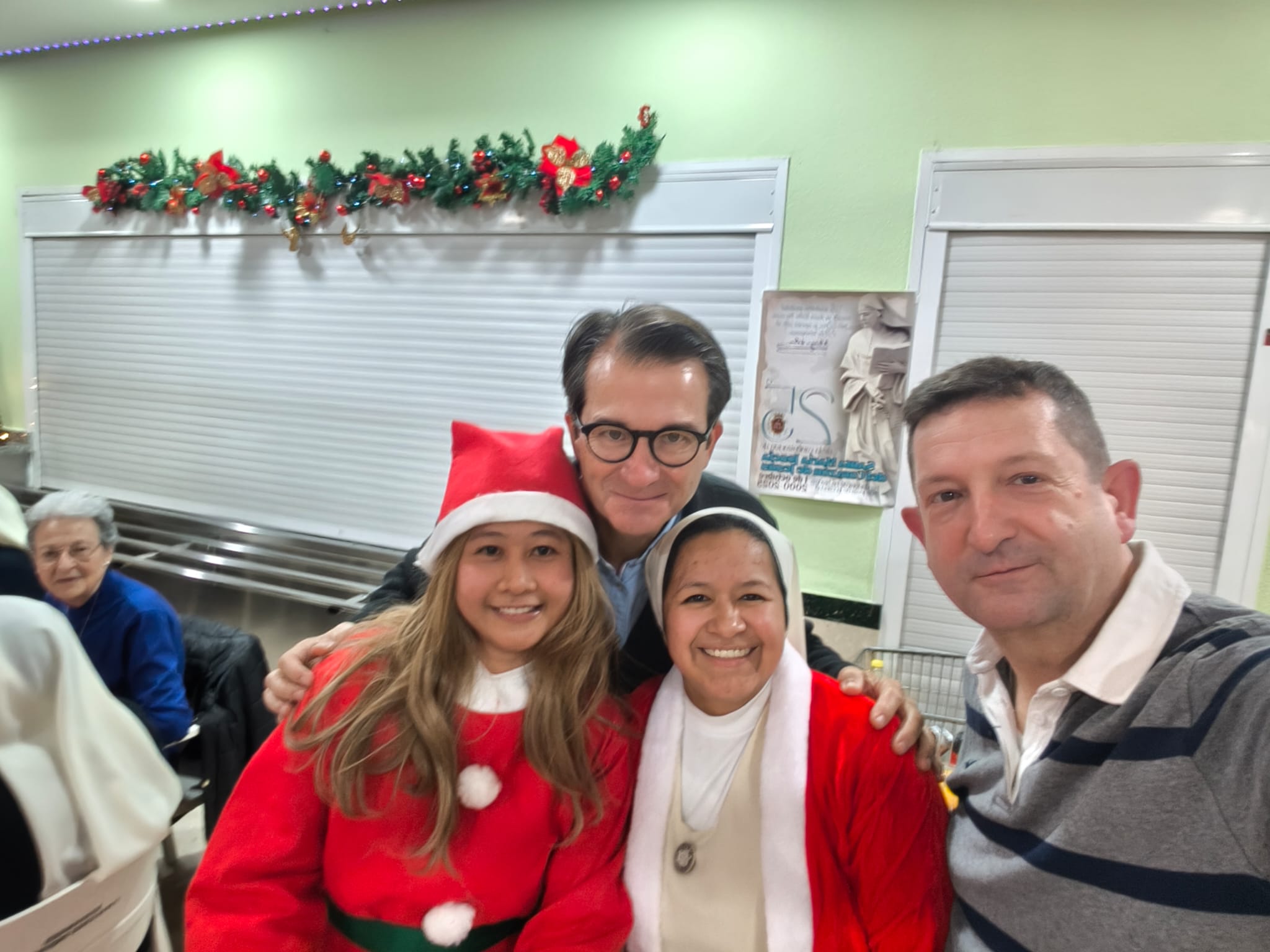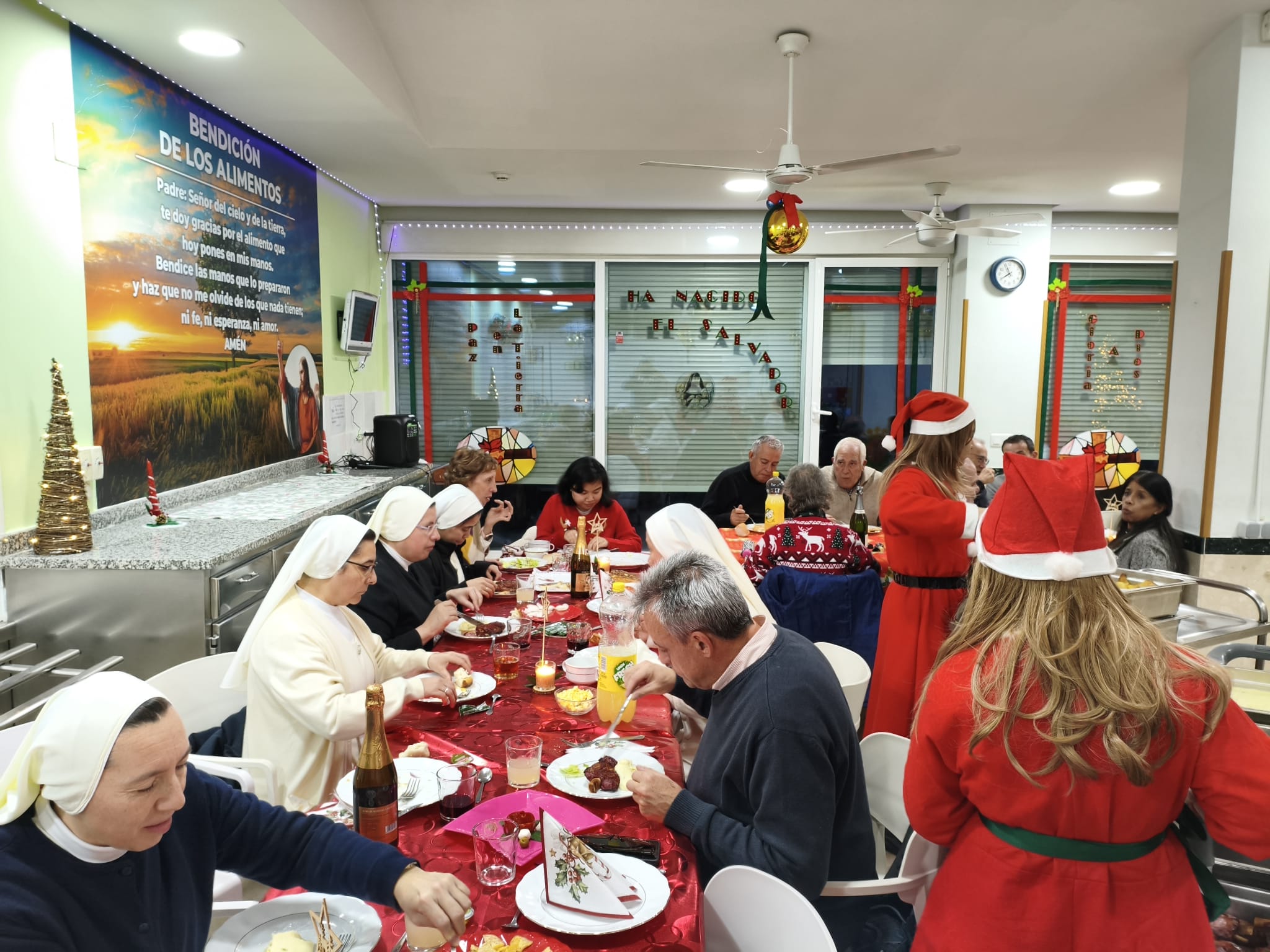Las Siervas de Jesús son las anfitrionas de esta jornada especial. Ellas preparan el ambiente, bendicen la mesa y acompañan a cada persona con cercanía y afecto. Su labor es asegurar que todos se sientan parte de una misma familia, ofreciendo palabras de consuelo, escucha y esperanza propias del espíritu navideño.