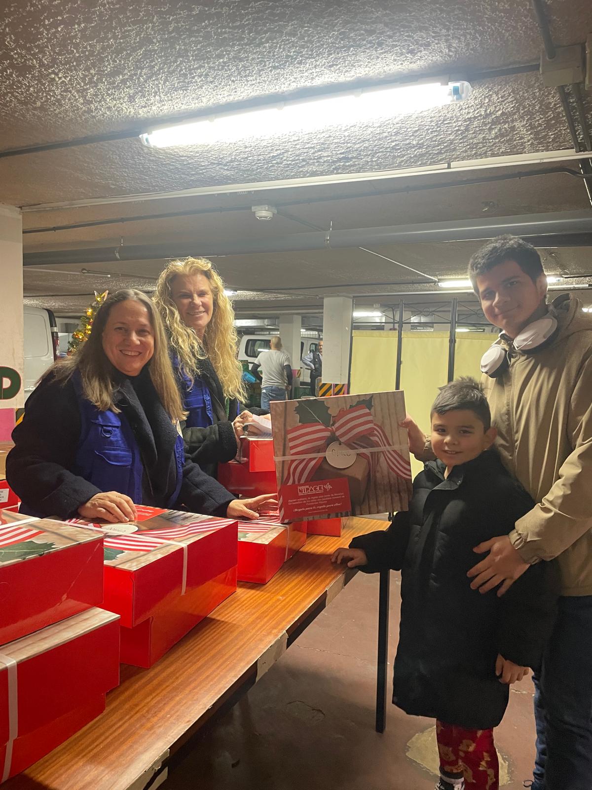 La voluntaria Olga desempeña un papel fundamental durante el reparto. Con empatía y dedicación, se encarga de la distribución de los regalos, conversa con los asistentes y crea un clima de confianza que hace de la jornada un momento entrañable. Su labor refleja el valor del voluntariado como corazón operativo del comedor.